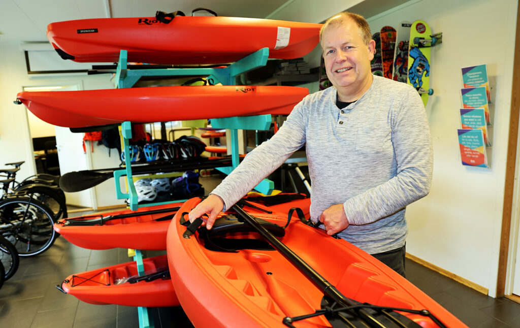 Daglig leder av BUA Utlånssentral, Alf Sveinung Haughom er strålende fornøyd med det utvidede utlånstilbudet som nå gjøres klar på Kvæven. Her fotografert ved en tidligere anledning, da sommerutstyr var mest aktuelt.