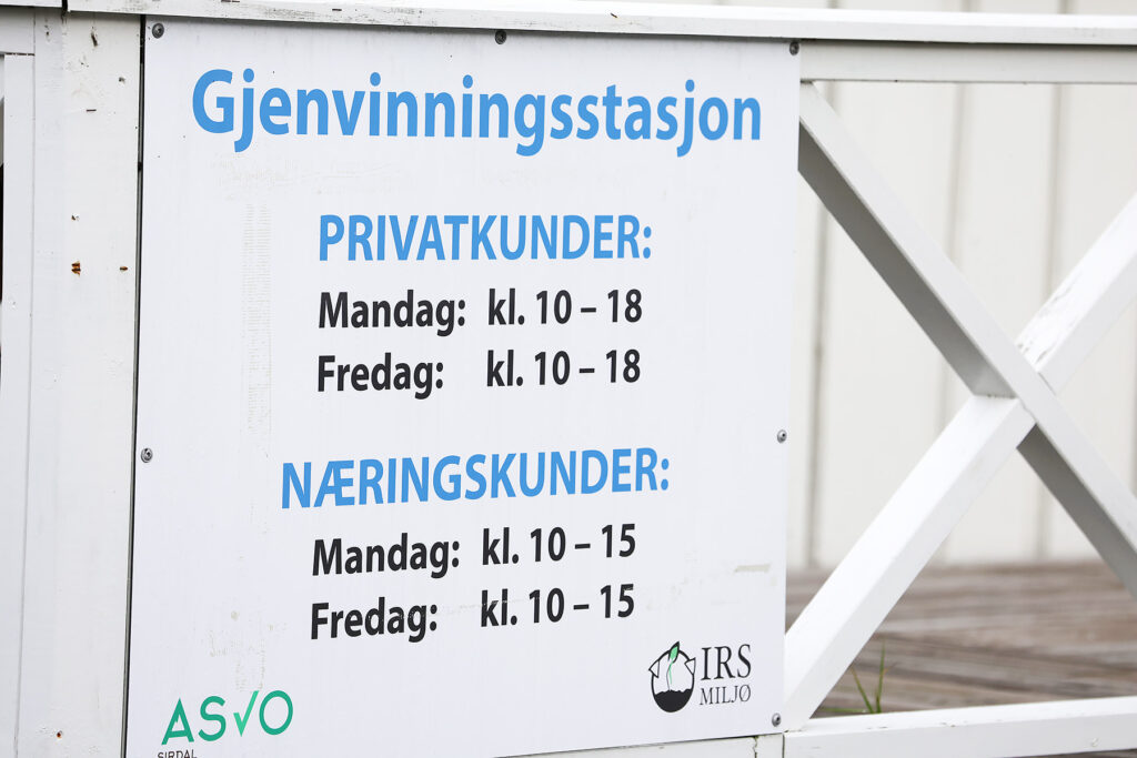 -Vi mener det tilbudet vi har til næringa i Sirdal er godt. Stasjonen er åpen for levering av næringsavfall mandag og fredag fra kl. 10 til 15 og papp, metaller og EE-avfall kan leveres gratis, sier han.