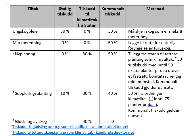 Retningslinjer for tilskudd til skogbruket kan leses i sin helhet her.