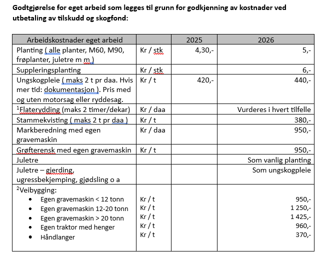 Tilskuddssatser og godtgjørelse for eget arbeid gjeldende for 2026: