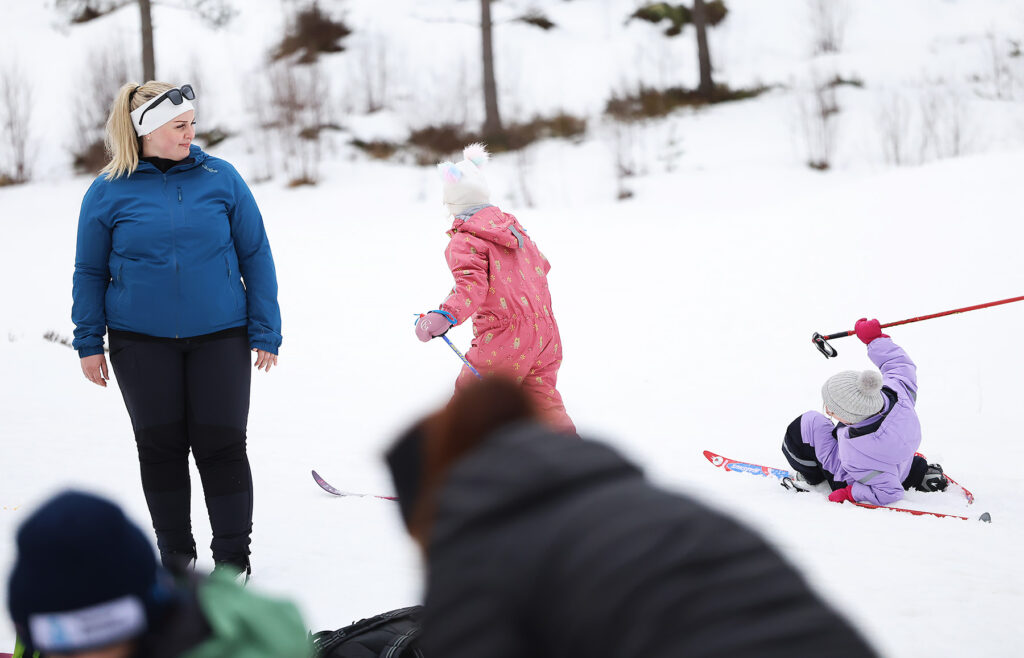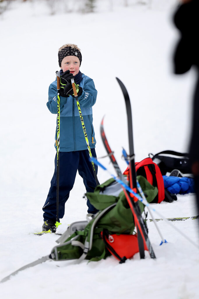 -Vi var heldige som ikke fikk regn i dag og elevene koser seg. De får lov å gå 600 og 800 meter sløyfene på egen hånd, og så skal vi ha en fellesrunde på 2 kilometer for dem som vil være med. I fjor var det elever som gikk over ei mil under skidagen, sier lærer Inger Merete Liland.