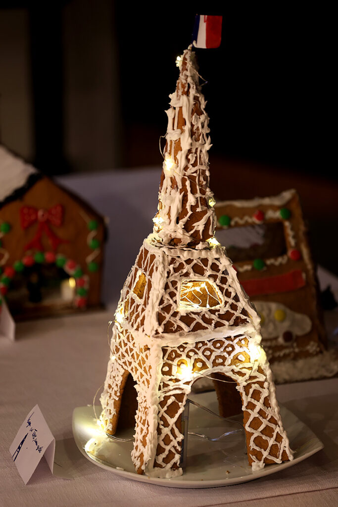 Eiffeltårnet står også på Tonstad. Pepperkakeutgaven av det verdenskjente tårnet er laget av Tore, Anna og Ole.