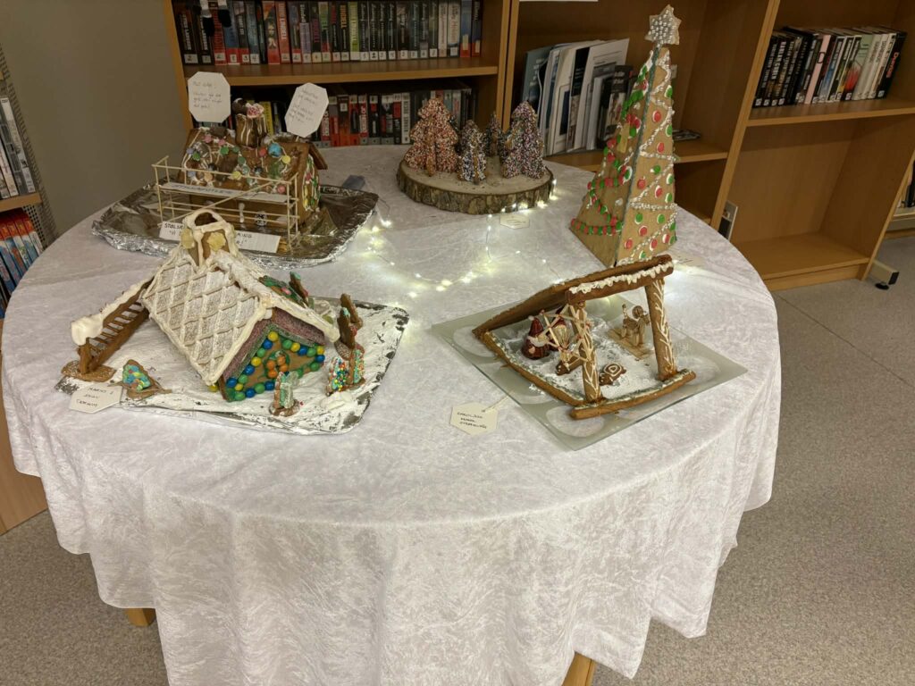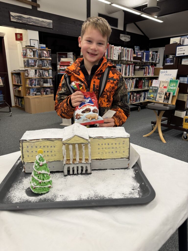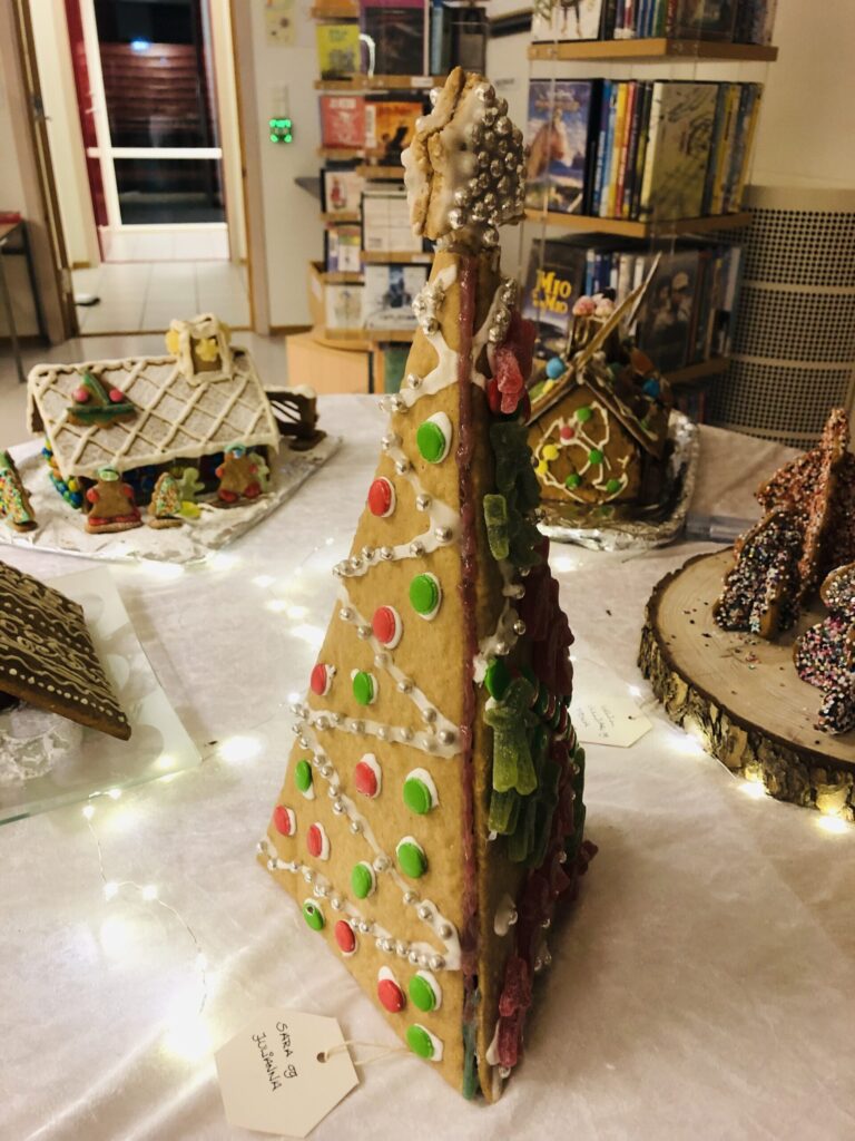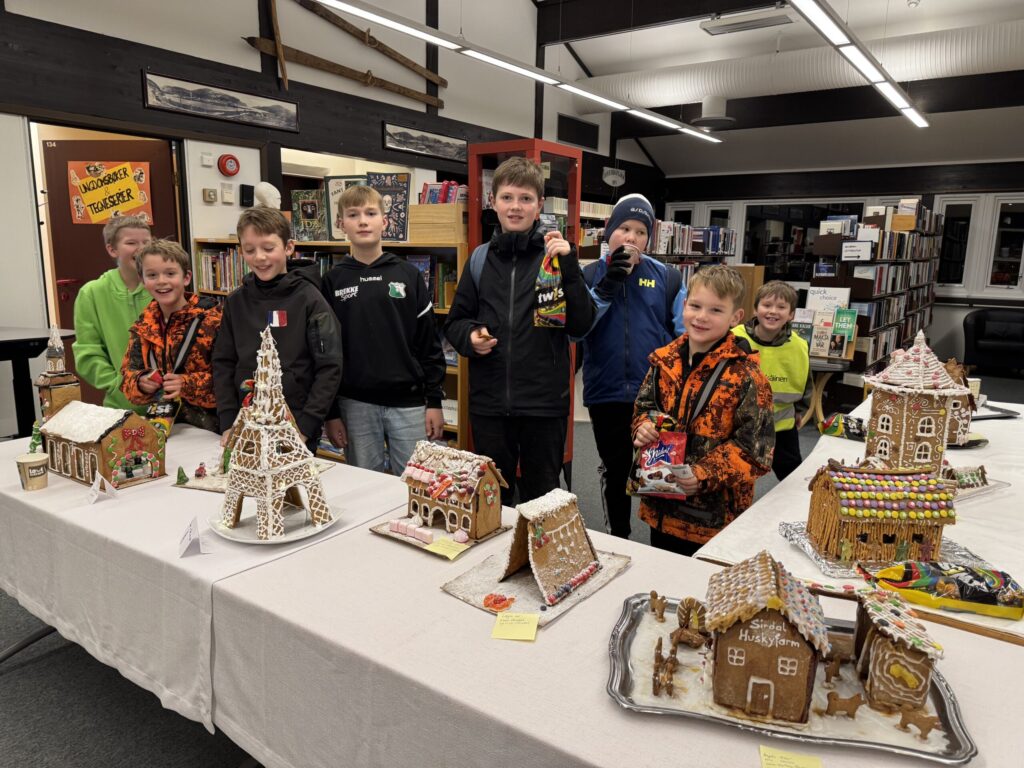 På biblioteket på Tonstad er det utstilt flotte pepperkakehus som er med i konkurransen om fineste byggverk. Dette huset er laget av Kristaps, Samuel, Aslak, Sverre, Vegar og Mathias.